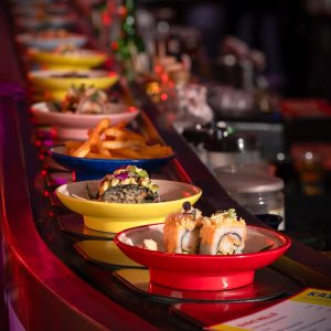 The new Mumbai outpost is spread across two distinct but connected spaces. It includes a 72-seater Harajuku Tokyo Café & Bar and a 12-seater Harajuku Bakehouse. The main restaurant transitions from a daytime Kaiten Zushi experience, complete with conveyor belt sushi and an open sushi bar, to a high-energy izakaya by night, where sake bombs, gyoza platters, and interactive bar elements take center stage. Designed as a Japanese game centre crossed with a Tokyo diner, the space is immersive, cheeky, and full of surprise. Guests can expect sushi boats, dessert challenges, and even a Robot DJ. Even the smallest touches, from the merch shelf to the DJ booth, are designed to surprise and spark conversation.