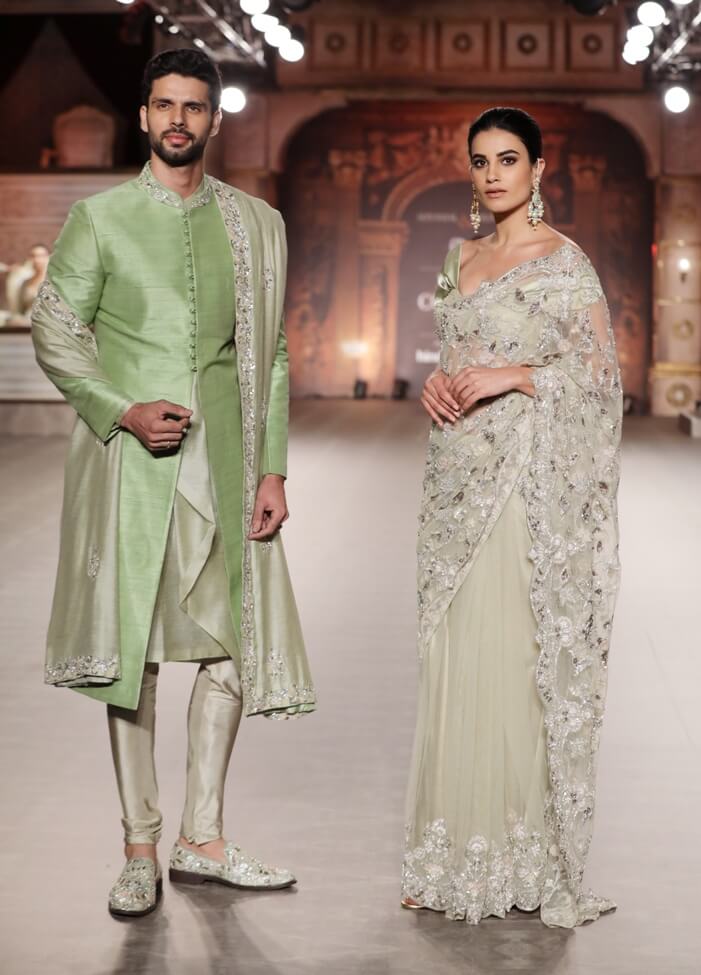 Bollywood star Kriti Sanon who walked the ramp for Shyamal and Bhumika says she is excited to have been Shyamal & Bhumika’s muse this year. She adds, ” With their distinct vision and stunning craftsmanship, they have carved a special place in my heart. I resonate with their designs truly capture the essence of Indian romanticism, like no other. The Shyamal Bhumika woman is someone who is full of complexities while being strong and in touch with her femininity. She confidently takes on life with a deep-rooted pride in her heritage and culture, seamlessly adapting to contemporary times.”