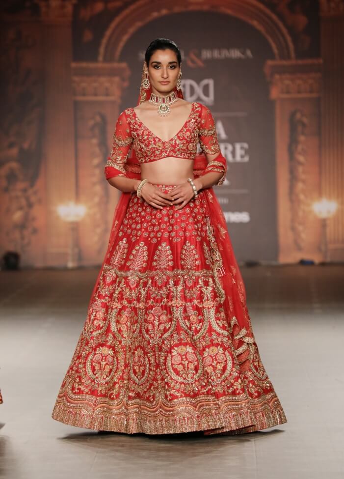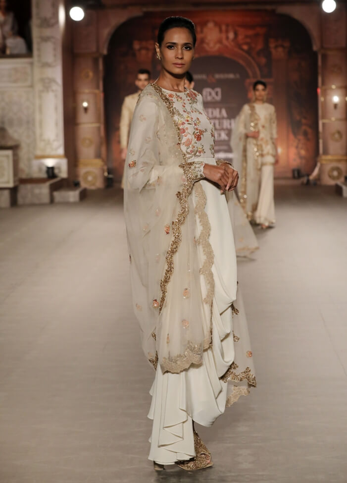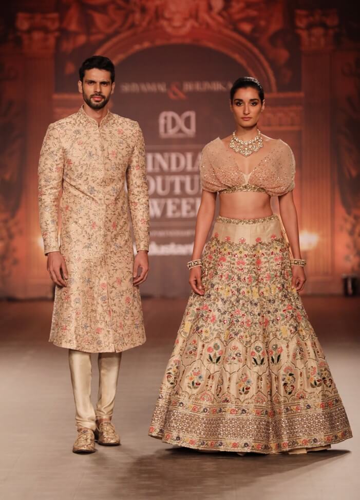 Shyamal & Bhumika said ‘ For The Renaissance Muse’ at India Couture Week 2019, we have utilised the most elaborate embroideries in couture. It is an attempt to give a better modernising outlook through trend centric offerings and a timeless iconic bridal look inspired from our love for colour, texture, meadows and gardens. Our collection signifies a wonderful connection between conventional and present day India.”