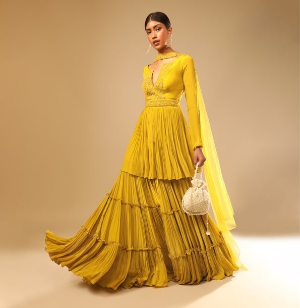 The ZOHA collection introduces the most fascinating silhouettes. To the ethnic lovers, the flowy lehengas fit right for the twirls. From the hints of frills to off-shoulder crop top lehengas, you deserve a chance to fulfill your wishlist. Unlimited ruffles are the highlight of this collection. Ready pleated ruffle georgette sarees can sort your cocktail parties. Whereas an indo-western crepe gown, jumpsuit, flowy georgette anarkalis are some of the trendy picks this season. Crepe sharara suit styles belong to be part of the joyous events.
