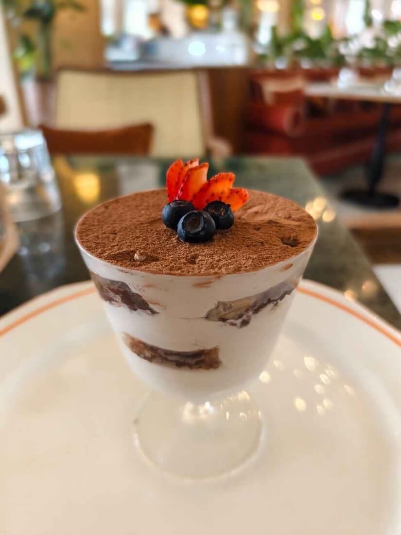 Bold espresso meets luscious mascarpone cream in this decadent creation, layered beautifully and finished with a delicate dusting of cocoa, a dessert that captures the timeless charm of classic tiramisu in every spoonful.