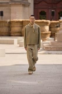 The Fashion Show today introduces an oasis in Milan, among 192 bales of raw linen that occupy a square in the centre of Milano, on a backdrop of historic buildings, in broad daylight. The bales have been transported from Normandy, where flax is grown with its blue flowers that bloom for just a brief moment in early summer and will re-enter the production chain once the show is over, to be crafted in Italy into Oasi Lino. The dream of nature in a metropolitan context, and the circular values it conveys, becomes tangible. ZEGNA commits to certifying Oasi Lino fibres as 100% traceable by 2024.