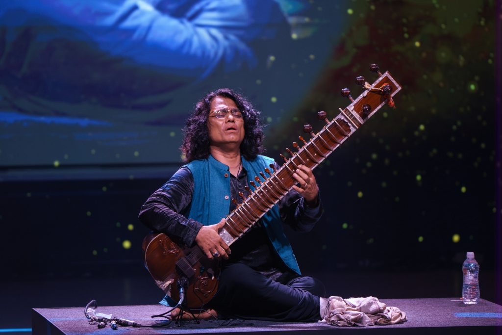 Ravi Chary, a sitar virtuoso with an international repertoire, infused the string instrument’s magic into the Indo-Jazz fusion album ‘Crossing’. Along with his quartet, he struck a synergistic chord on the first day of the festival with an interweaving of jazz, funk, and rock, sending ripples of pulsating energy into the audience. He was accompanied by other percussionists like Sangeet Haldipur, Satyajit Talwalkar, Gino Banks, and Sheldon D’Silva.