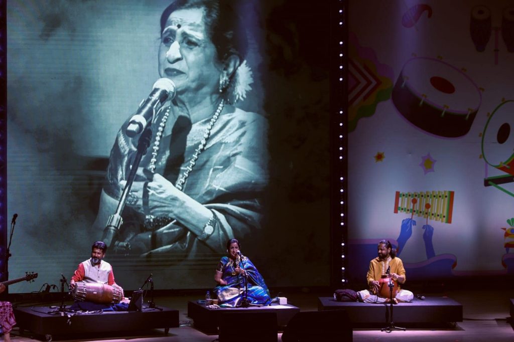 The two-day celebration of the Grammy-winning artist’s legacy saw some incredible artists taking forward the fusion music movement that he pioneered. And what better way to begin the third edition with none other than Aruna Sairam’s meditative performance with the Thrillana Project! She curated a spellbinding musical ensemble with Shalini Mohan, Arun Kumar, Sangeet Haldipur, Jyotsna Srikanth, Giridhar Udupa, and B.C. Manjunath, who delivered a soulful rendition of thillanas accompanied by modern and traditional sonic instruments like violin, ghatam, tabla, and bass guitar.