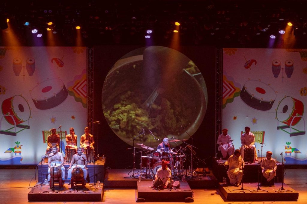 The final act of the night and the festival was one for the history books. Bringing tropical and arid percussion traditions of Kerala and Rajasthan, BeatRoute, helmed by veteran artist Ranjit Barot and theatre director Roysten Abel, gave a fitting conclusion to the two-day extravaganza. From the powerful mizhavu and chenda to the dynamic dhol, nagara, and khartal, BeatRoute took us on a journey through India’s diverse soundscape—where desert beats meet temple echoes, and tradition meets innovation. The audio-visual storytelling of two diverse folk traditions through folk instruments added a great heartland flavour to the strong Indo-Western fusion theme this year.