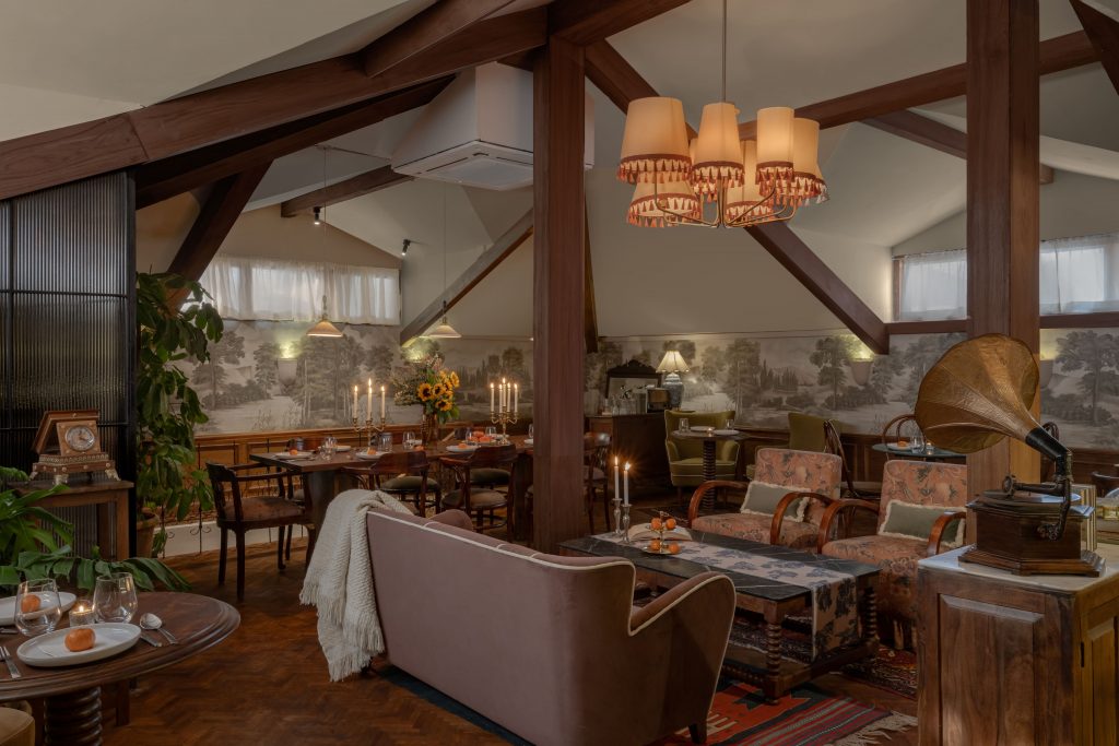 The 45-cover restaurant is split between two levels. The lower floor houses a coffee bar, a wine and cheese room, a retail section, and seating that features cosy sofas and armchairs where you can while away your afternoon. Take the wooden staircase to the upper level which resembles an intimate, attic-like space with vintage wallpaper, a cocktail bar (operational once the restaurant receives its liquor license), a live sushi bar and a reading corner where you can settle in with a book.