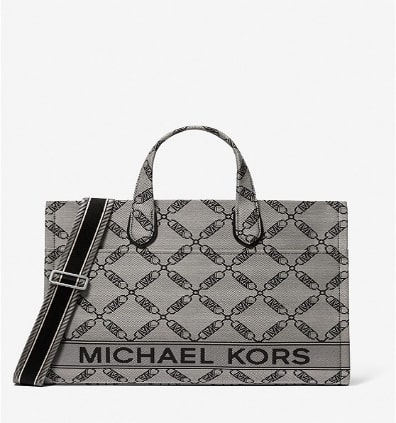 For Spring 2023, MICHAEL Michael Kors introduces Gigi – she is the new girl on the block- featured in the empire logo Jacquard. The Gigi tote is guaranteed to complement almost any outfit thanks to its neutral logo chain jacquard pattern. The large, rectangular shape is perfectly sized to carry all your daily essentials, and it comes with a crossbody strap for added versatility.