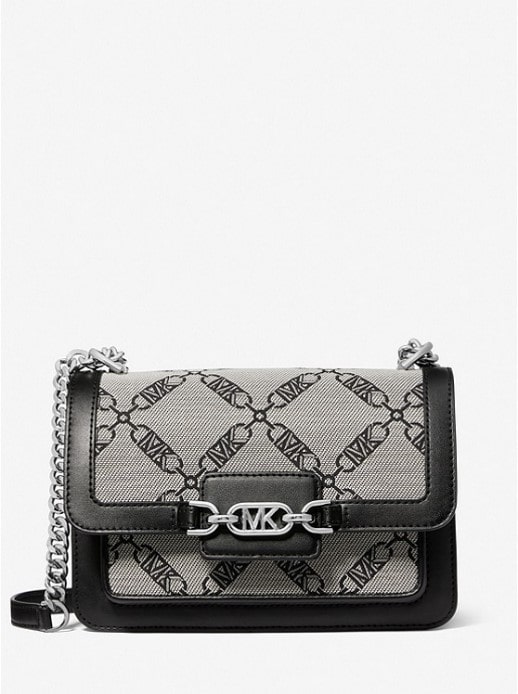Heather Large Metallic Empire Logo Jacquard Shoulder Bag