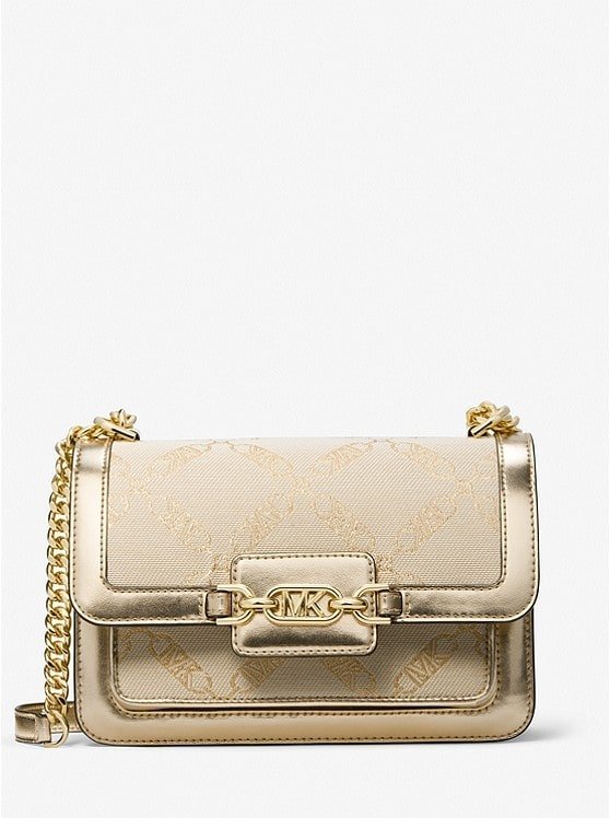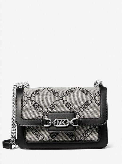 Heather Large Metallic Empire Logo Jacquard Shoulder Bag
