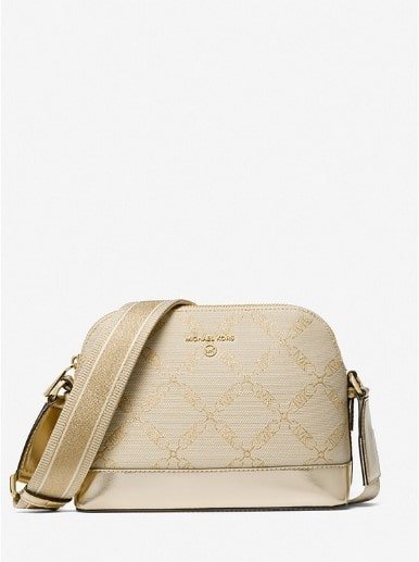 Jet Set Large Metallic Empire Logo Jacquard Dome Crossbody Bag