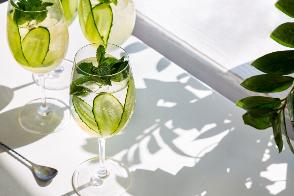 4. Stir gently and garnish with a Slice of Cucumber and sprig of mint