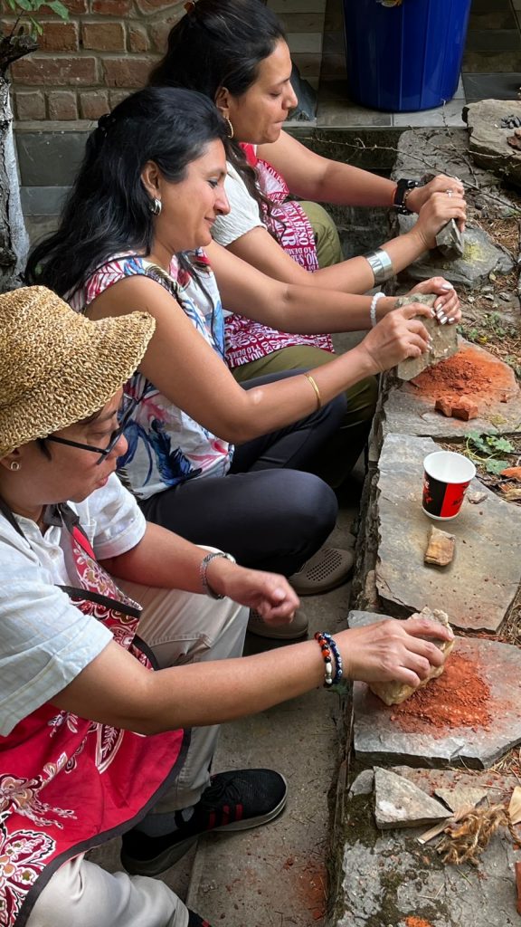 A part of the sale proceeds from this show is being donated to the Himalayan Rilung Foundation by the participant artists to support its work in experiential hands-on learning and the protection of the natural Himalayan environment. Many of the participant artists are well-known women artists from Delhi (listed below). The show will be curated by Georgina Maddox, a Delhi based art critic and Curator who was a participant at the Course herself and did a short half-day session on Art Curation at the Course.