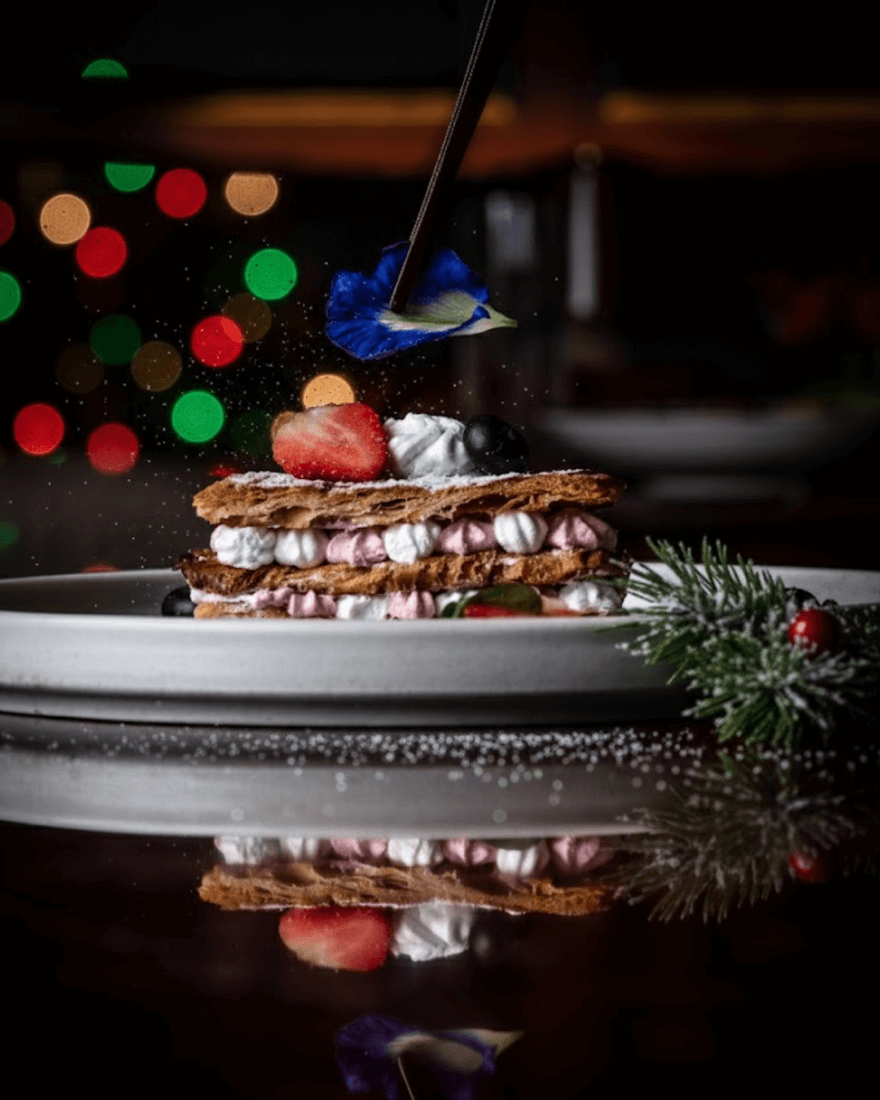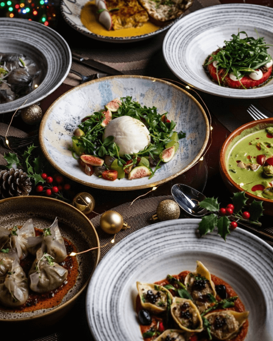 Known for its understated elegance and fluid identity, Kai is neither strictly a bar nor a restaurant, but a space designed to be experienced at one’s own pace. Its festive menu reflects this balance, opening with refined starters such as Goat Cheese Croustade, Saffron and Wine Poached Pear, Pan-Seared Scallops, and Melon Prosciutto. Comforting mains follow, including Bocconcini Agnolotti, Spinach and Ricotta Strudel, Turkey Roulade, and Shiraz Braised Lamb Shank, before concluding with festive desserts like Plum Cake with brandy butter sauce and Red Wine–Soaked Berry Tiramisu.