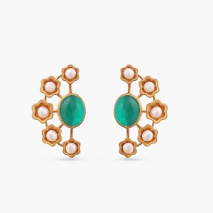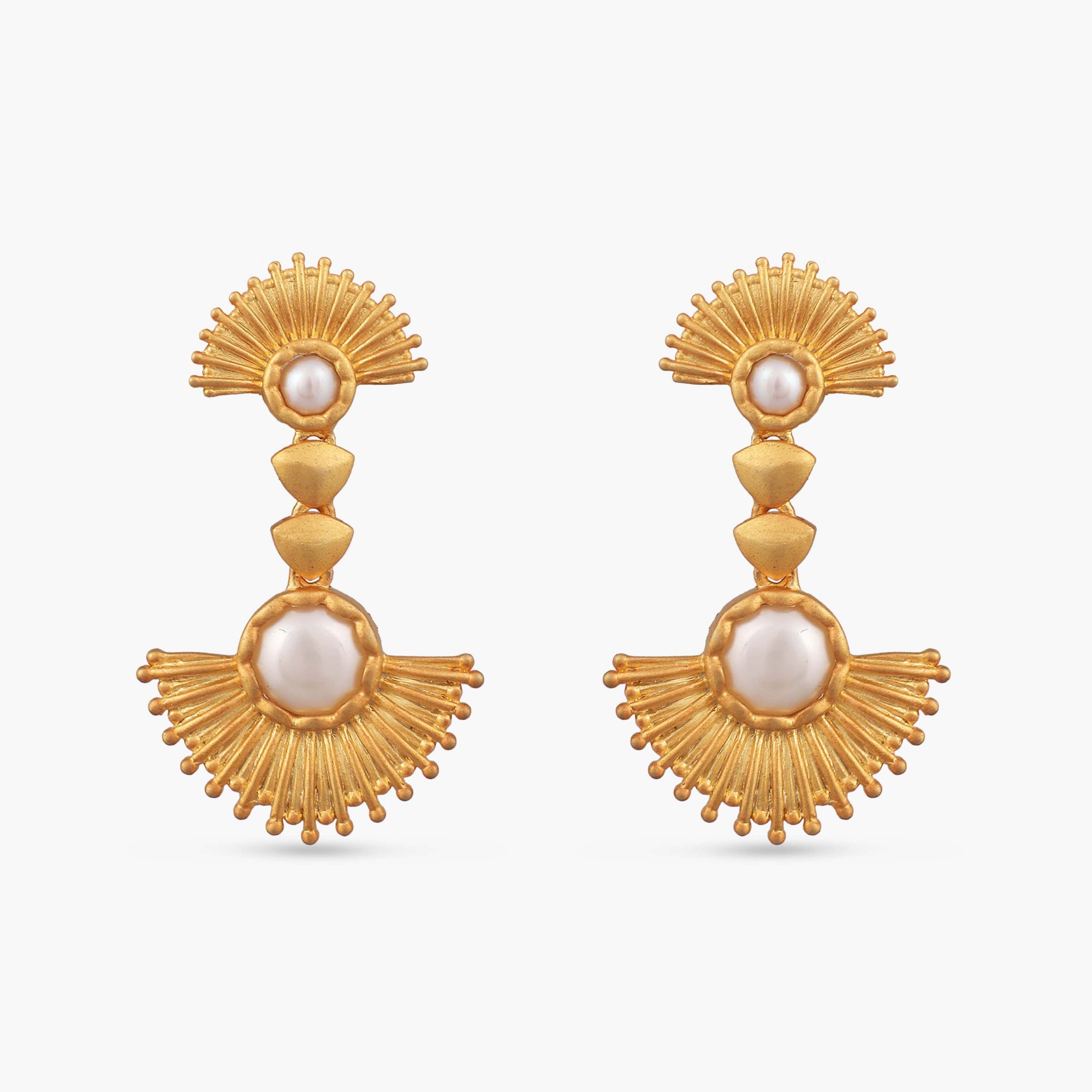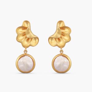 The necklaces are crafted with unique pendants encrusted with CZ stones adding a vibrant charm to the whole piece. Pearl Silver Studs embedded with Nipuna’s signature pearls are here to make a bold statement that can stand by itself to make any outfit look phenomenal. The matte finish, yellow gold plating add on to this earring’s striking brilliance. The golden elements are characterized by sand texture emulating the cool and breezy attitude of the ocean.