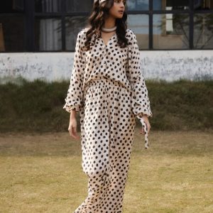 Styling Nouria’s co-ord sets is a breeze. For a casual daytime outing, pair linen pants with a crop top and sandals for a relaxed yet chic look. Transition into evening by swapping the sandals for heels and adding statement jewelry for a touch of glamour. Heading to a brunch with friends? Opt for a playful polka-dot shorts and top set, paired with espadrilles and a straw hat for a fun and feminine vibe.