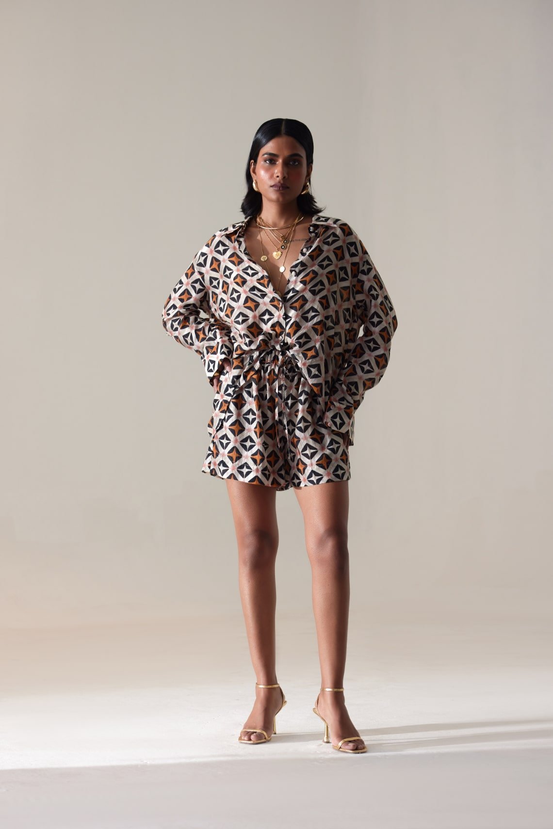 Styling Nouria’s co-ord sets is a breeze. For a casual daytime outing, pair linen pants with a crop top and sandals for a relaxed yet chic look. Transition into evening by swapping the sandals for heels and adding statement jewelry for a touch of glamour. Heading to a brunch with friends? Opt for a playful polka-dot shorts and top set, paired with espadrilles and a straw hat for a fun and feminine vibe.