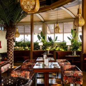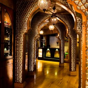 The extensive 9,000 sq. ft. area of Opa! Bar & Cafe showcases a Greeko-Mediterranean ambiance, where warm tones and intricate carvings whisk guests away to the Middle East, creating a lush and inviting atmosphere. The design masterfully blends earthy hues, antique elements, and intricately detailed doorways, further enriching the overall dining experience catering to diverse preferences. The venue transforms into a nightlife hotspot post-lounge hours, featuring exclusive events with guest DJs from around the world. It also hosts Sufi Nights, Acoustic Nights, and prominent techno gigs, ensuring a dynamic and engaging atmosphere.