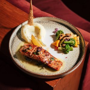 Opa!’s signature dishes offer a delightful culinary journey through Mediterranean flavors, crafted by the esteemed Chef Serdal Cicek and Sous Chef Suneet Bhardwaj. The Truffle Oil Hummus features a creamy chickpea puree blended with tahina, garlic, truffle oil, and shiitake mushrooms, creating a rich and earthy dip. The Chicken Pita Slider presents paprika-marinated deep-fried chicken served in warm pita bread, offering a perfect bite-sized delight. The Adana Kebab, made from minced lamb, red bell pepper, and spices, brings a burst of authentic Turkish flavors. The Kuzu Lokum Steak is a succulent lamb steak seasoned with black pepper, butter, and oregano, served sizzling hot. The Beyti Kebab showcases minced lamb skewers wrapped in pita bread, accompanied by Iskander sauce and labneh for a flavorful experience. Lastly, the Butun Pomfret Izgara features grilled pomfret filet served with herb rice and sautéed vegetables, rounding off the menu with a fresh and wholesome option.