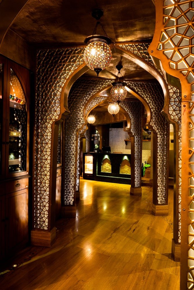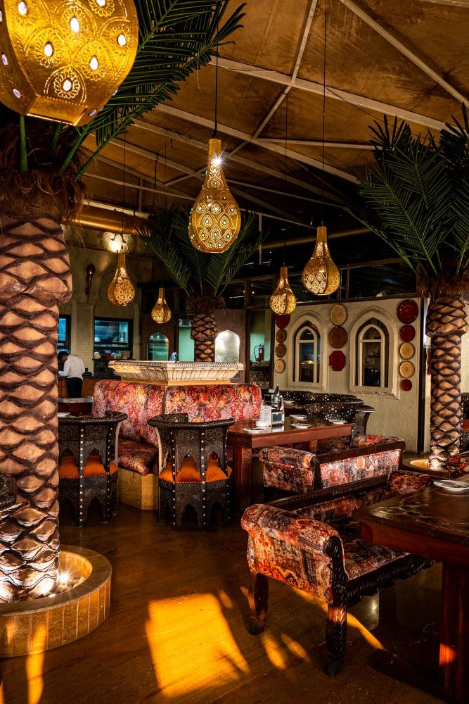 The extensive 9,000 sq. ft. area of Opa! Bar & Cafe showcases a Greeko-Mediterranean ambiance, where warm tones and intricate carvings whisk guests away to the Middle East, creating a lush and inviting atmosphere. The design masterfully blends earthy hues, antique elements, and intricately detailed doorways, further enriching the overall dining experience catering to diverse preferences. The venue transforms into a nightlife hotspot post-lounge hours, featuring exclusive events with guest DJs from around the world. It also hosts Sufi Nights, Acoustic Nights, and prominent techno gigs, ensuring a dynamic and engaging atmosphere.