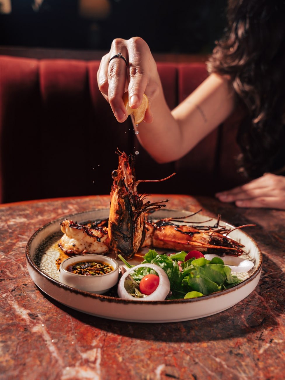Signature Cocktails by Karl Fernandes draws inspiration from the rich and diverse flavors of Mediterranean cuisine, their unique cocktail experience highlights the distinctive notes of the region, offering a refreshing and delightful journey through classic Mediterranean flavors. Standout creations include the Pomona, a harmonious blend of gin, feta gin, Aperol, watermelon juice, and kokum syrup with a touch of feta cheese; Mr. Gebaly, featuring bourbon-infused apricot, Campari, and Rosso for a sophisticated tribute to Italian artistry; Shibint, combining gin, dill syrup, cucumber, and green apple juice with a hint of malic acid and soda; Alastor, a Greek tiki cocktail with walnut rum, Jagermeister, banana saccharum, honey, and lime juice; and Lapis Lazuli, a refreshing mix of rose wine, lychee juice, jasmine tea, and lime acid, capturing the coastal flavors of Greece.