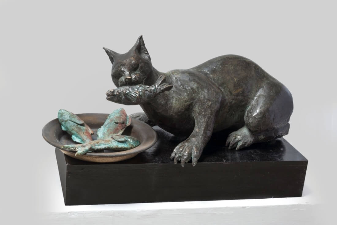 Kiran’s relationship with metal is central to her practice. She explains that while bronze is a beloved medium, its cost and the high stakes of even small mistakes led her to explore mild steel; her time teaching design and technology in London further honed her metalworking skills. “I have always loved shaping metal—heat and a careful hand let you coax any form from a stubborn sheet. While bronze holds a special place in my heart, its cost and the risk of a single mistake led me to embrace mild steel, a medium that lets me be both bold and economical. My years teaching and working in London sharpened my technique, but it is Santiniketan—its ponds, birds, barefoot walks and changing seasons—that remains my deepest inspiration; I hope that sense of enchantment and resilience comes through in every piece” explains Kiran Dixit Thacker.