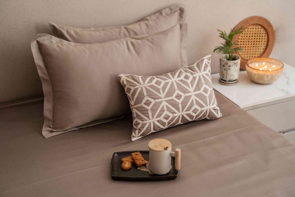 Description: The minimal elegance of a straight line, the bedsheet set combines grace, with artistic boldness. It consists of a solid bedsheet set with an accent cushion cover to add that extra charm to your bedroom chambers.
