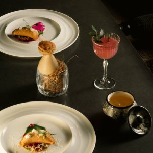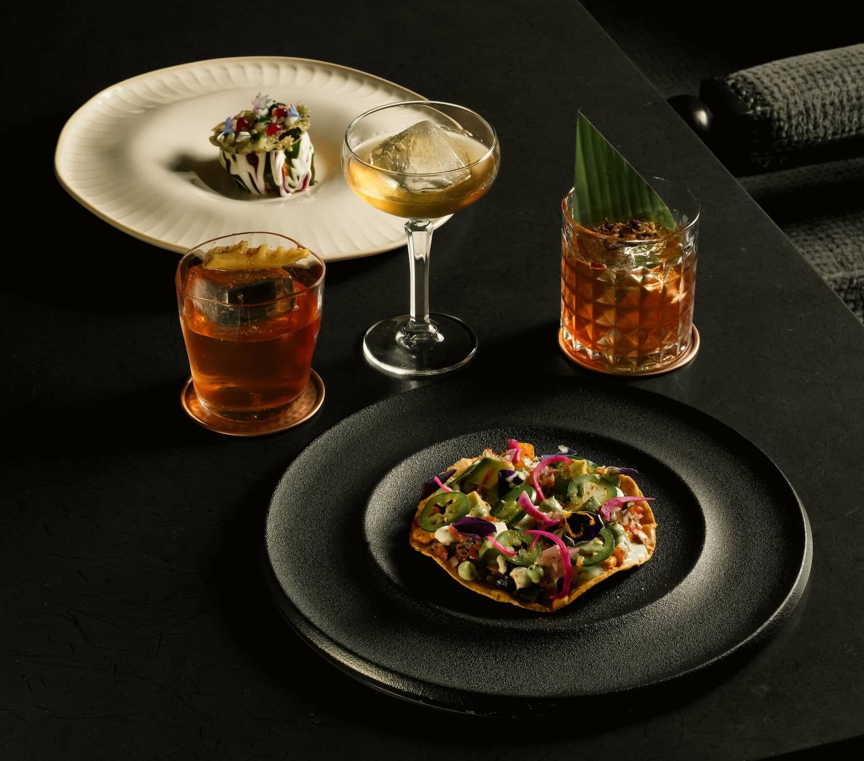 The antojito tasting menu has been curated by chefs Megha Kohli and Noah Louis Barnes, who have worked in close collaboration with the bar to ensure that each dish is conceived as a direct response to its cocktail counterpart. The result is a precise interplay of flavour, where acidity is balanced with fat, spice is softened by texture, and smoke is lifted by citrus. Executed in real time by Chef KD, the kitchen operates in perfect synchrony with the bar, ensuring that each course arrives as part of a seamless, choreographed experience.