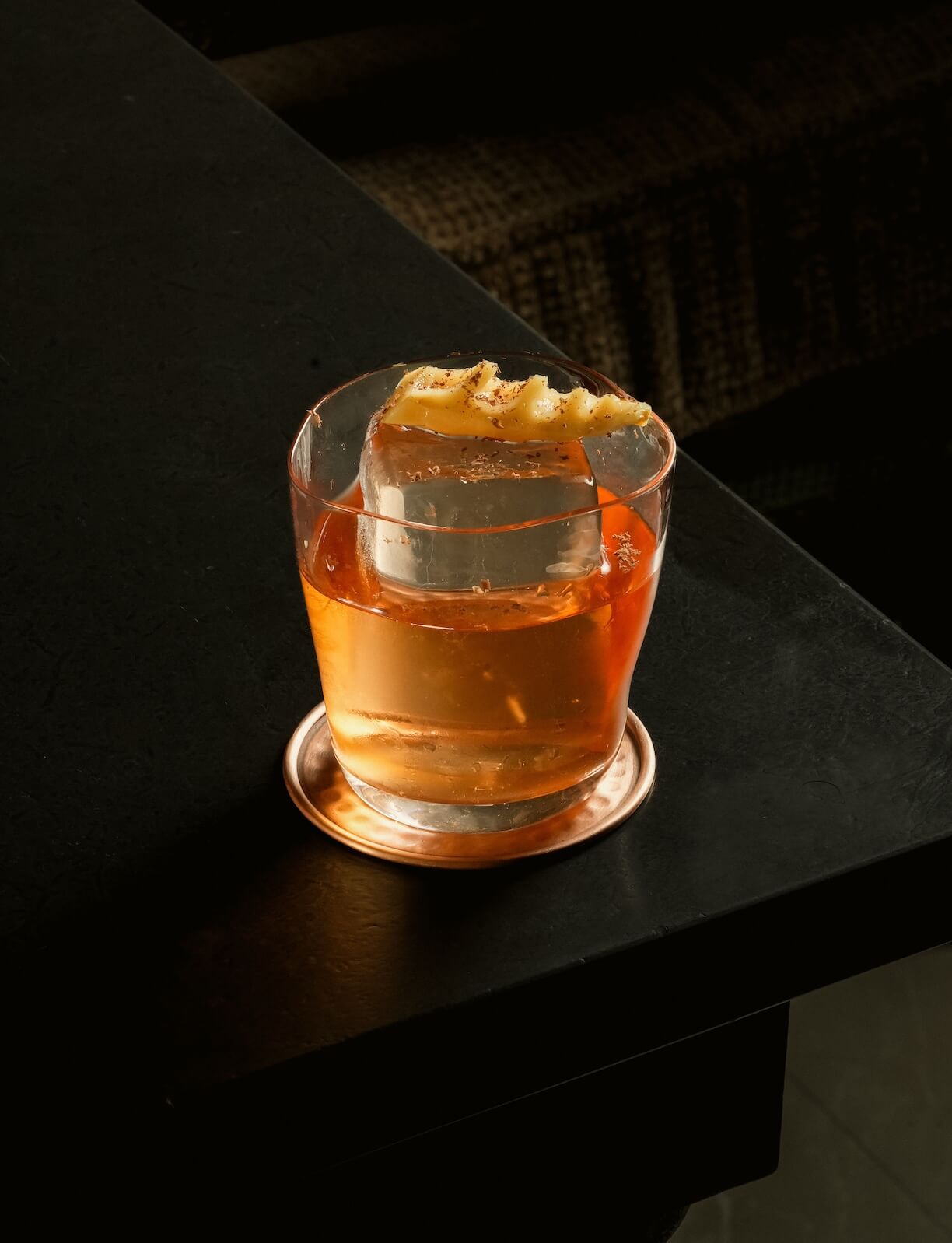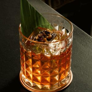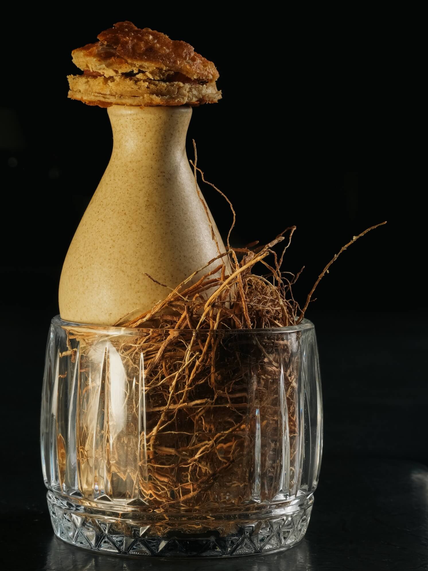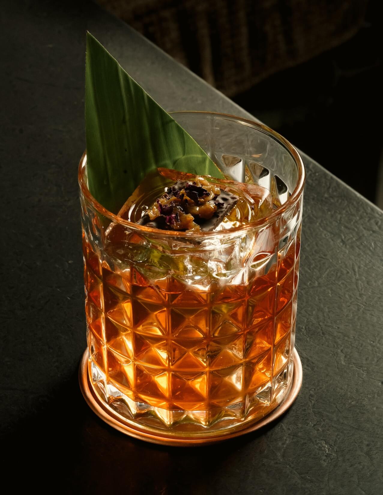 - Gulkand Cacao Old Fashioned with Gunpowder Spiced Mushroom Empanada