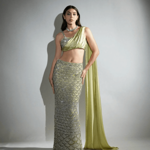 “Our design codes deviate from traditional luxury fashion, our designs appeal to ultra luxury shoppers as well as mass consumers and our collection encapsulates a transformative moment with versatility and elegance. Generating an image of glamour that is desired by and played back by our customers. Perfect for the modern bride-to-be, who is confident, unapologetically herself, and ready to dazzle the world. ” – Vaishali Dahiya, Founder & Creative Director, Realm by Vaishali