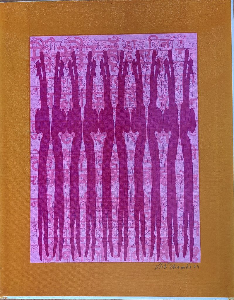 Moti Zharotia’s serigraphy prints depict the harmony between humans and nature, blending human and natural forms into decorative abstractions. His works evoke a sense of interconnectedness and balance within the universe. The art of printmaking exists in India since the early 1900s’, when Raja Ravi Varma had set up a press, to encourage printmaking as a means to popularize art and reach out to a larger audience. Till then, art was restricted principally to the Royal families. Afterwards, many presses were set up in Calcutta and thereafter in Delhi and Mumbai. Delhi Silpi Chakra was an artist organization that encouraged and promoted printmaking in a big way in the 1950s and 1960s.