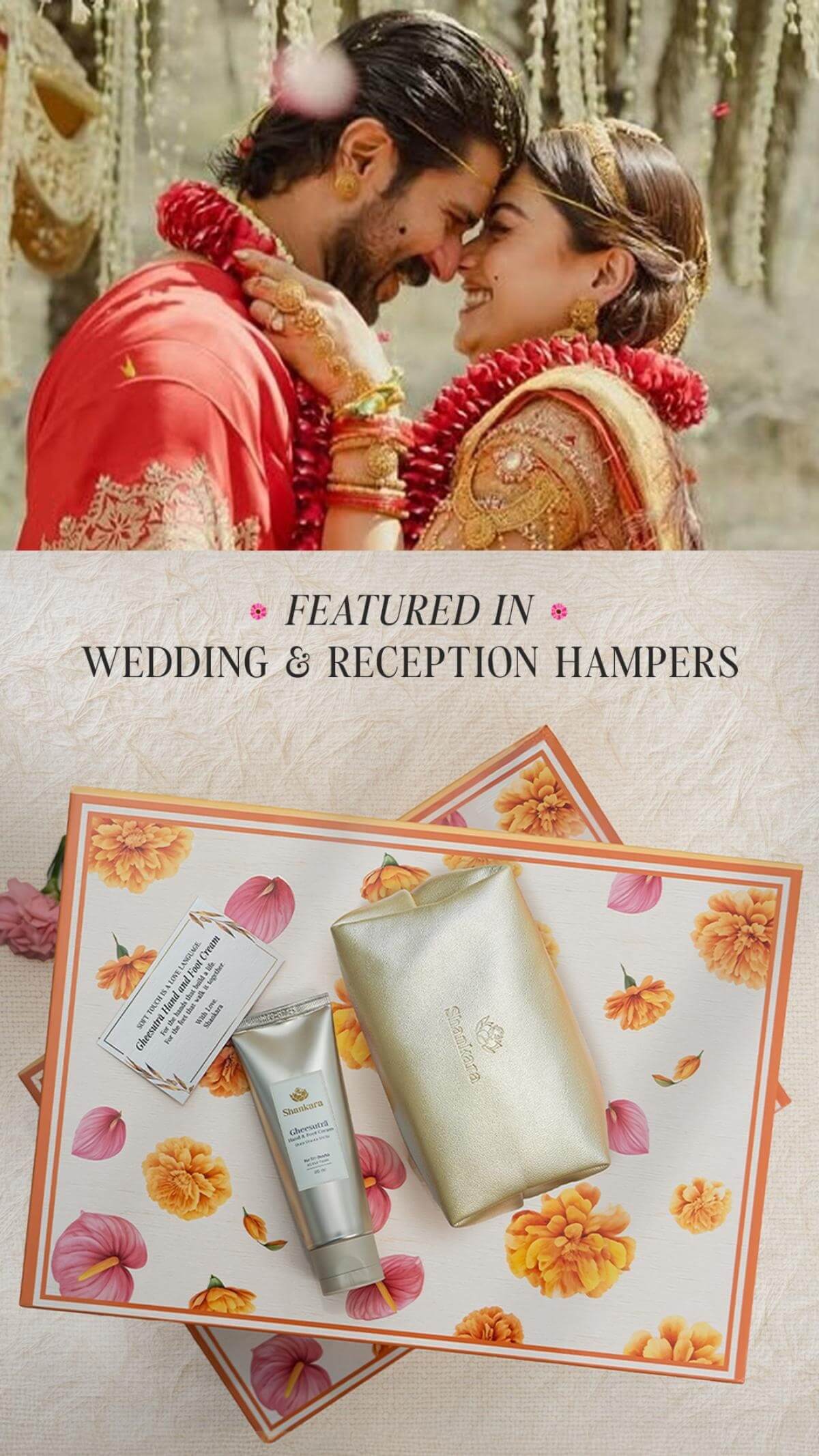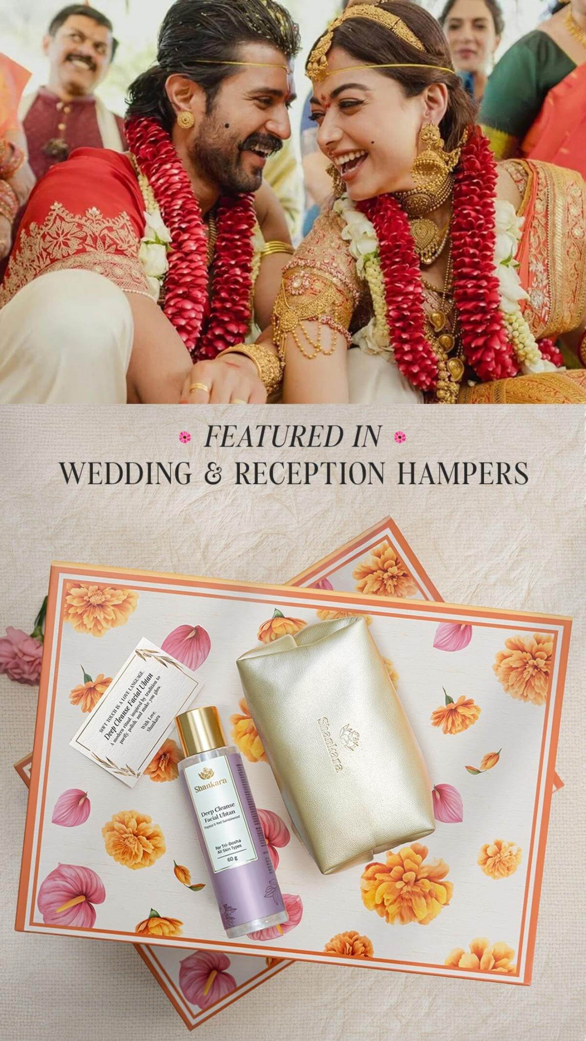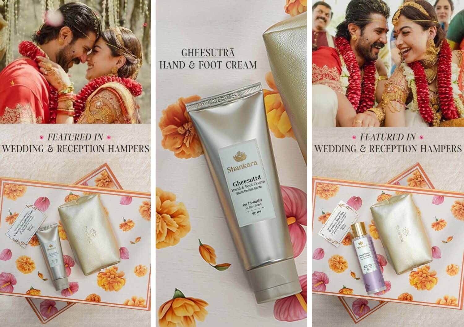 Shankara India’s bespoke Gheesutra Hand & Foot Cream featured in Rashmika Mandanna and Vijay Deverakonda’s Wedding & Reception Hampers