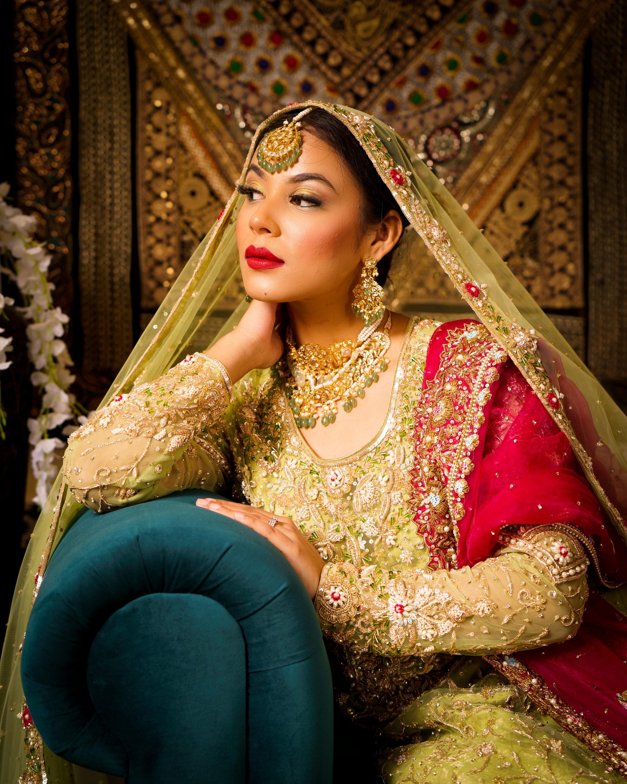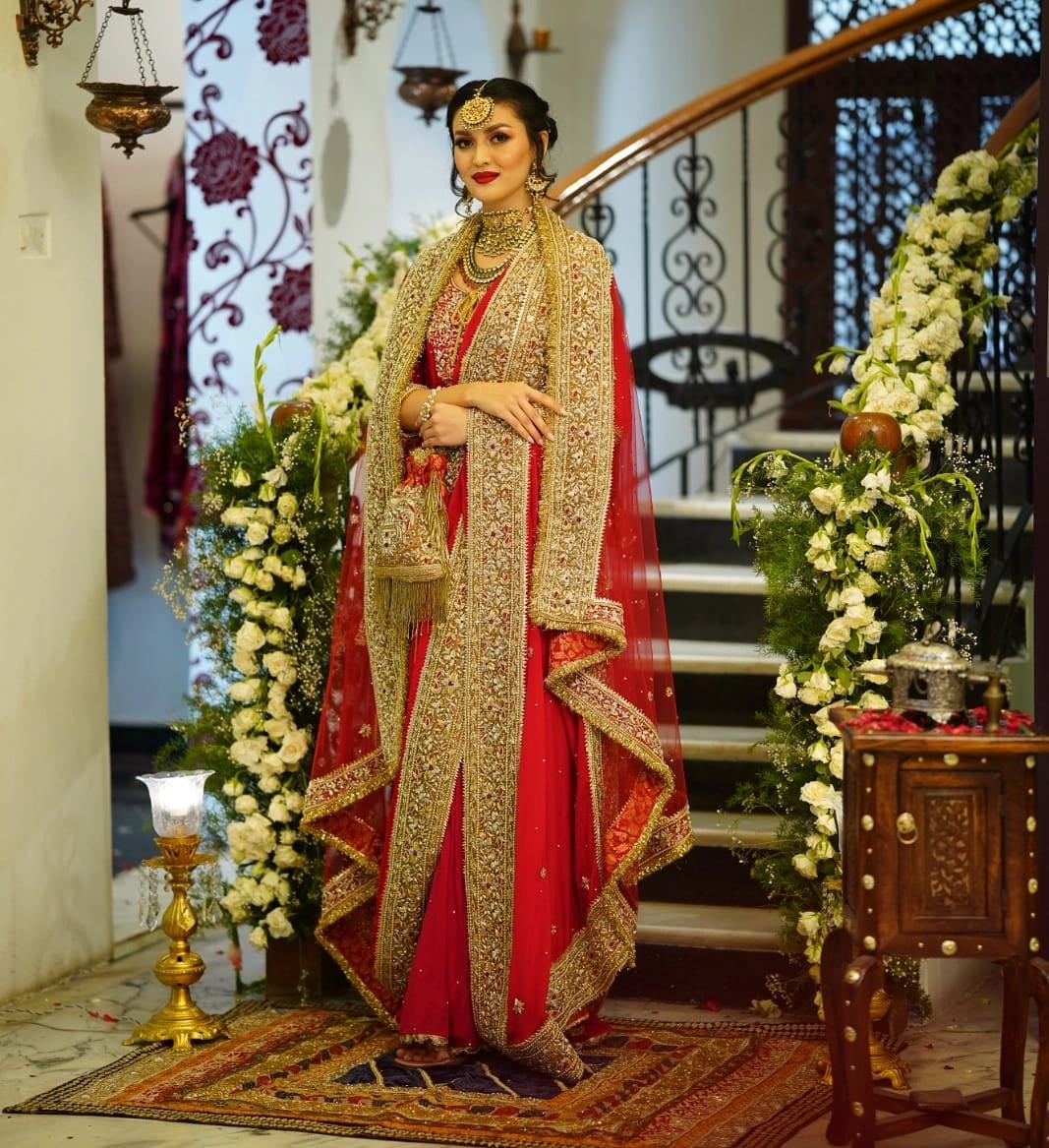 The extraordinary details along the flawless neckline and sleeves region make the outfit an illustration of astounding hand-tailored. Ethereal elegance drawn on the outfit makes it look whimsical and just like a fairytale in itself. Every outfit of Sheenaz-e-arooza has its own NOVEL. A perfect pick for an intimate wedding.A collection celebrating the bride’s moments, beauty, and wholesome spirit to enjoy festive seasons of life. Our garments are the expressions of our brides’ joy and happiness. For us, the most important thing is to be able to capture their dreams and able to weave that magic into our garment designs. It’s truly the grandeur art we use in our garment making that expresses itself without even needing to say a word. We weave the love and magic our brides envisage on the most joyous moment of their life. Hope you enjoy the journey as much as we enjoyed creating it.