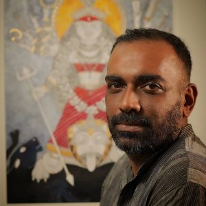 Samik De, based in Kolkata, is a self-taught artist with over two decades of professional practice in contemporary Indian art. With academic roots in Chartered Accountancy and Finance, Samik brings a unique analytical lens to his creative process. His works are heavily inspired by Indian mythology, especially Shaivism, and are rendered using ink and acrylic with meticulous detailing and bold expression. He has held eight solo exhibitions and participated in numerous group shows in India and abroad. His paintings are housed in private and institutional collections, earning him recognition for his ability to bridge ancient themes with modern visual language.