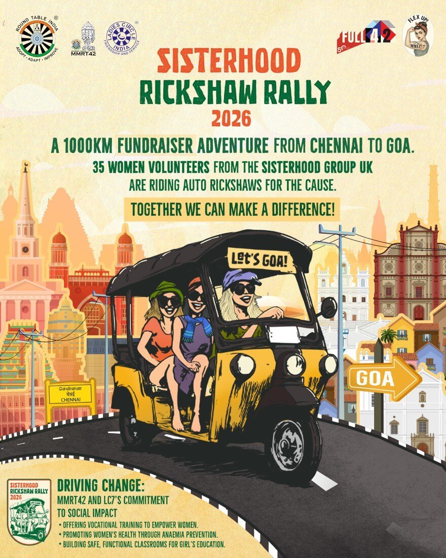 Chennai, March 2nd, 2026 – Following an impactful and highly successful collaboration last year, Madras Midtown Round Table 42 (MMRT42) and Madras Midtown Ladies Circle 7 (MMLC7) are proud to welcome back the sisterhood group to Chennai as they flag off the “Let’s Goa 2026 Rickshaw Rally.”