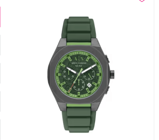 The AX4292 features a 44 mm stainless steel case paired with a sleek silicone strap, balancing comfort with a modern, performance-driven aesthetic. Its structured dial introduces a graphic quality that mirrors the pulse of live sets. Powered by a quartz chronograph movement, it delivers both precision and style, making it ideal for staying on your feet from one set to the next.