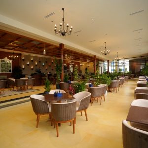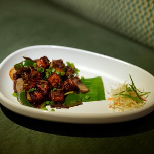 The menu starts off with local snacks or the popularly colloquial chakhna featuring Hesarubele Masala, Assorted Fryums, Nippattu Masala Chat, Boti Masala Chaat or the Classic Boiled Peanuts, Peri Peri Roasted Chana Bowl or Aloo Bonda. There’s a special Oriental Station with Wok Tossed Crispy Corn, Tangra Chilli Mushroom, Sticky Basil Chicken/Fish, Wok Tossed Butter Garlic Fish/Prawns and more. The large plates cover a range of South and North Indian specialities like Nilgiri Mushroom curry with Neer Dosa, Koli Keema Gojju with Parota, Gangura Koli Saaru with White Rice, Paneer Makhani, Aloo Matar Masala, Dhaba Butter Chicken or Kadai Chicken. You can end your meal with a simple scoop of ice cream or rely on Chikmagalur Coffee Panna Cotta, Banana Choc Chip Cake for a sweet tooth.