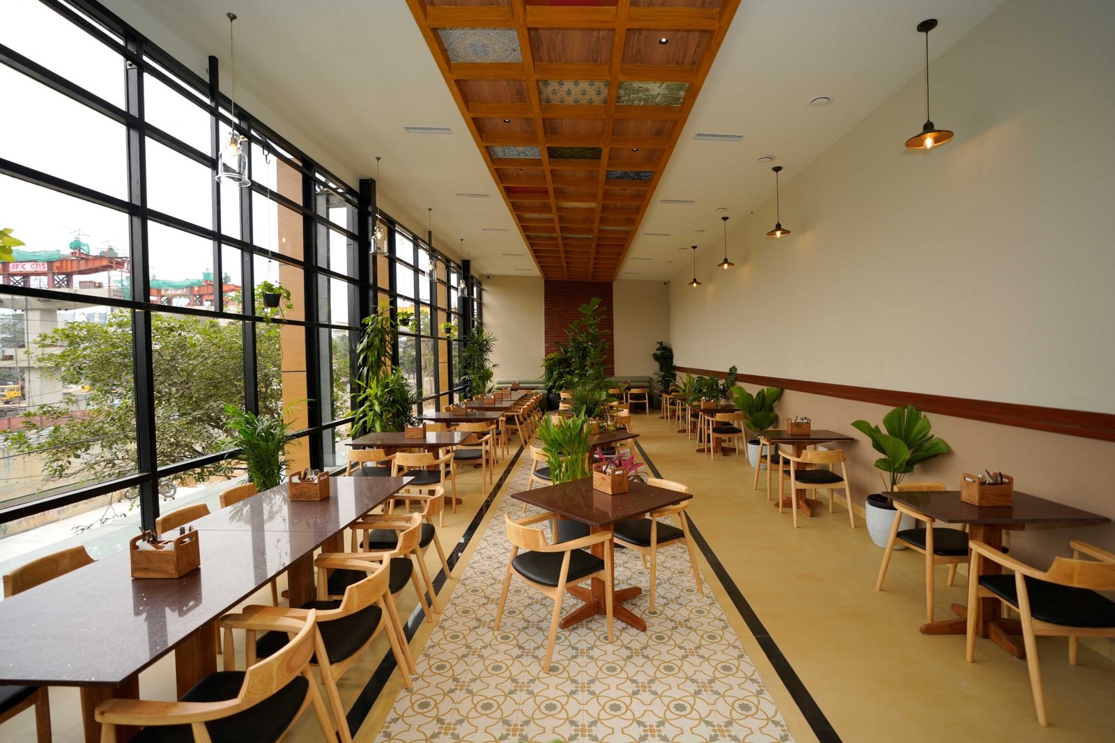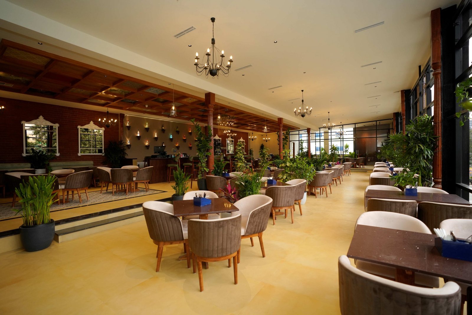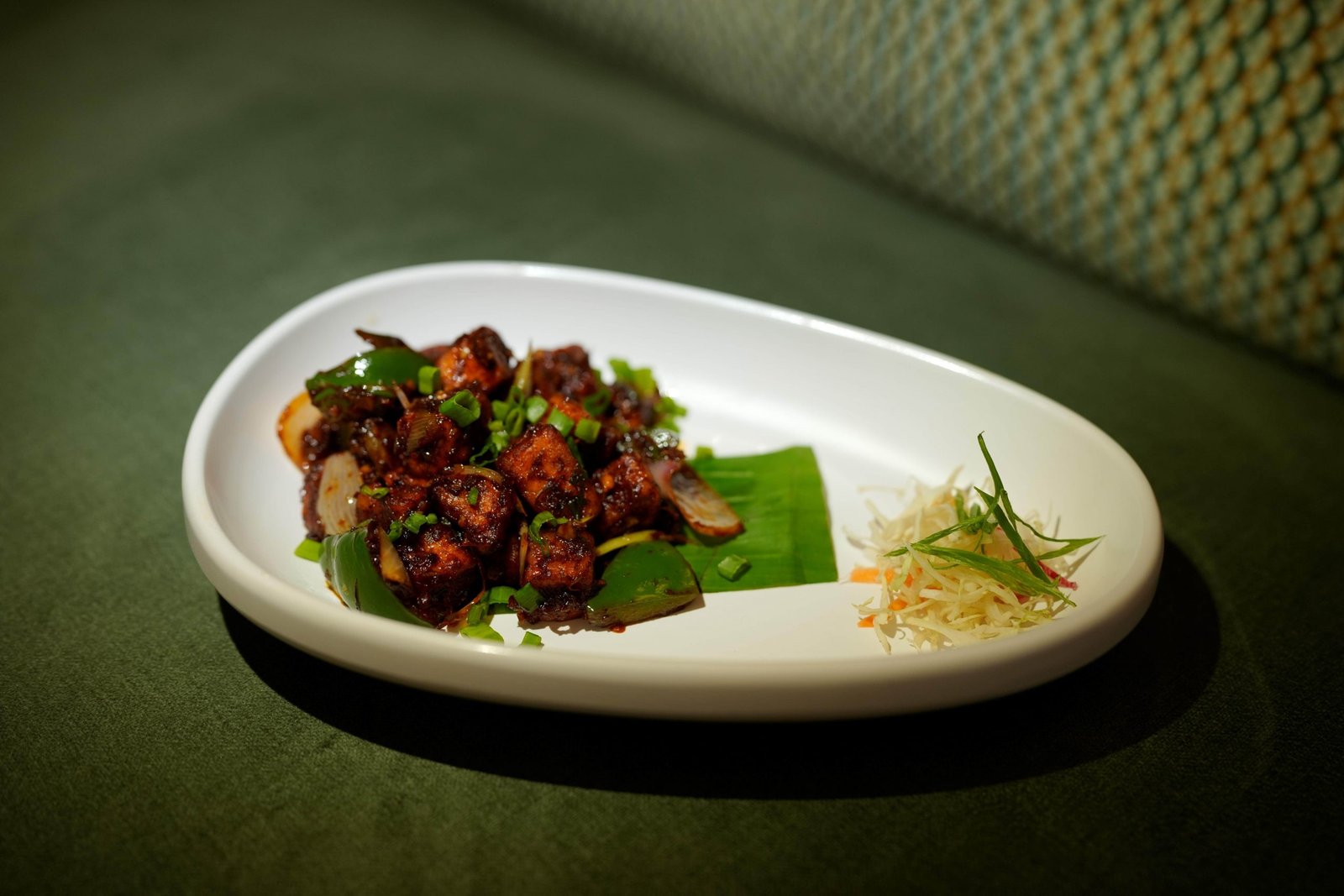 The menu starts off with local snacks or the popularly colloquial chakhna featuring Hesarubele Masala, Assorted Fryums, Nippattu Masala Chat, Boti Masala Chaat or the Classic Boiled Peanuts, Peri Peri Roasted Chana Bowl or Aloo Bonda. There’s a special Oriental Station with Wok Tossed Crispy Corn, Tangra Chilli Mushroom, Sticky Basil Chicken/Fish, Wok Tossed Butter Garlic Fish/Prawns and more. The large plates cover a range of South and North Indian specialities like Nilgiri Mushroom curry with Neer Dosa, Koli Keema Gojju with Parota, Gangura Koli Saaru with White Rice, Paneer Makhani, Aloo Matar Masala, Dhaba Butter Chicken or Kadai Chicken. You can end your meal with a simple scoop of ice cream or rely on Chikmagalur Coffee Panna Cotta, Banana Choc Chip Cake for a sweet tooth.
