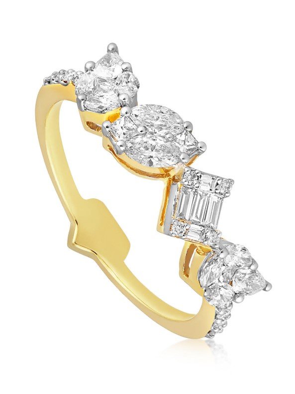 Description – A harmonious blend of four distinctive diamond shapes. From the graceful curves of pear and marquise to the sleek elegance of emerald cuts, this ring creates a symphony of style. A modern take on the timeless eternity band to give your loved one!
