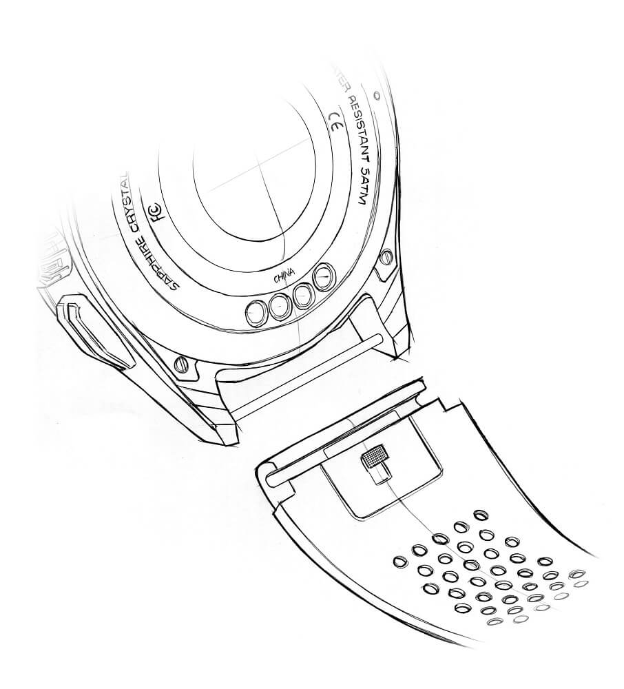 Activities are recorded with maximal precision and accuracy thanks to top-of-the-line sensors, including a new non-medical-grade heart-rate monitor, made of high-tech resin and naturally integrated into the caseback. This also enables reliable monitoring of calories burned, while the built-in GPS measures the user’s position during workouts and can calculate different performance metrics, and also includes a compass for direction, as well as an accelerometer and gyroscope.