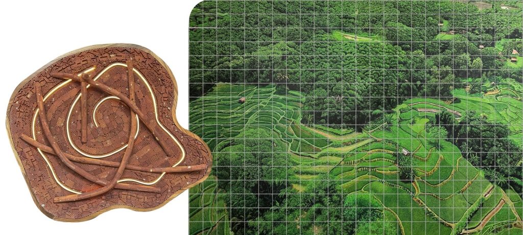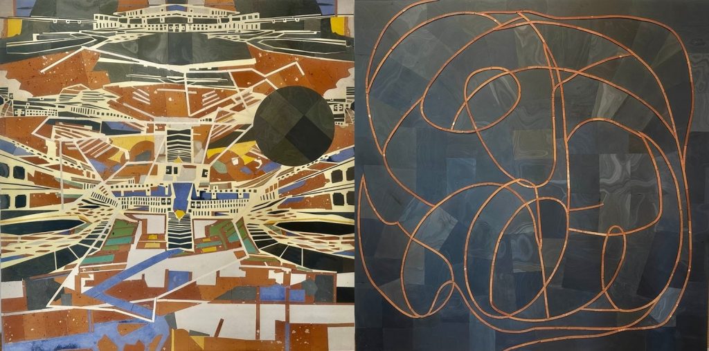 transformation that has increasingly become characteristic of all metropolitan cities today. Each artwork, with its detailedly laid out network of materials, serves as a cartographic guide to a world that is now replete with relentless geo-engineering, large-scale development projects, and climate emergency.