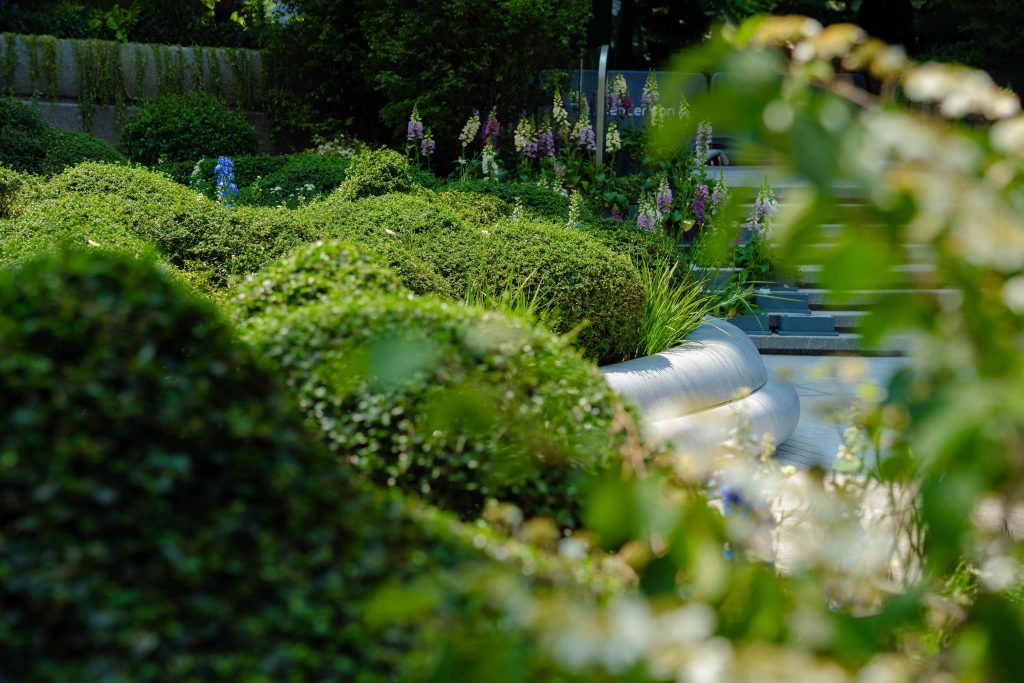 UK topiary artist Darren Lerigo uses his unique pruning skills to create green island hedges with fluid lines and unconventional shapes that echo The Henderson’s iconic silhouette.