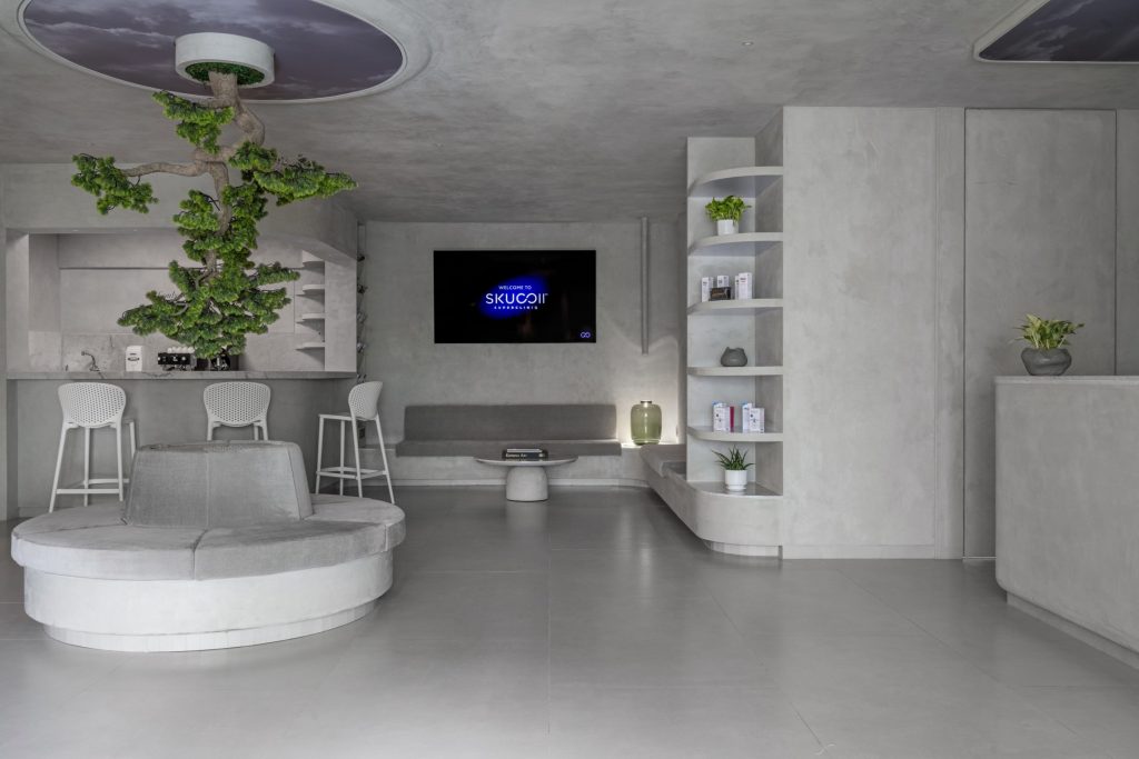 The arrival experience is nothing short of lyrical. The lobby—expansive yet intimately attuned to its surroundings—welcomes with a restrained theatricality. Rooted in the design philosophy of biophilia—the innate human tendency to connect with nature—the lobby invites the outside in through expansive glass doors that pour in mountain light and dissolve boundaries between structure and slope. The overarching theme of the resort’s decor, Centered Around You, finds expression here through visual metaphors of balance and harmony. This ethos materializes in the form of repeating