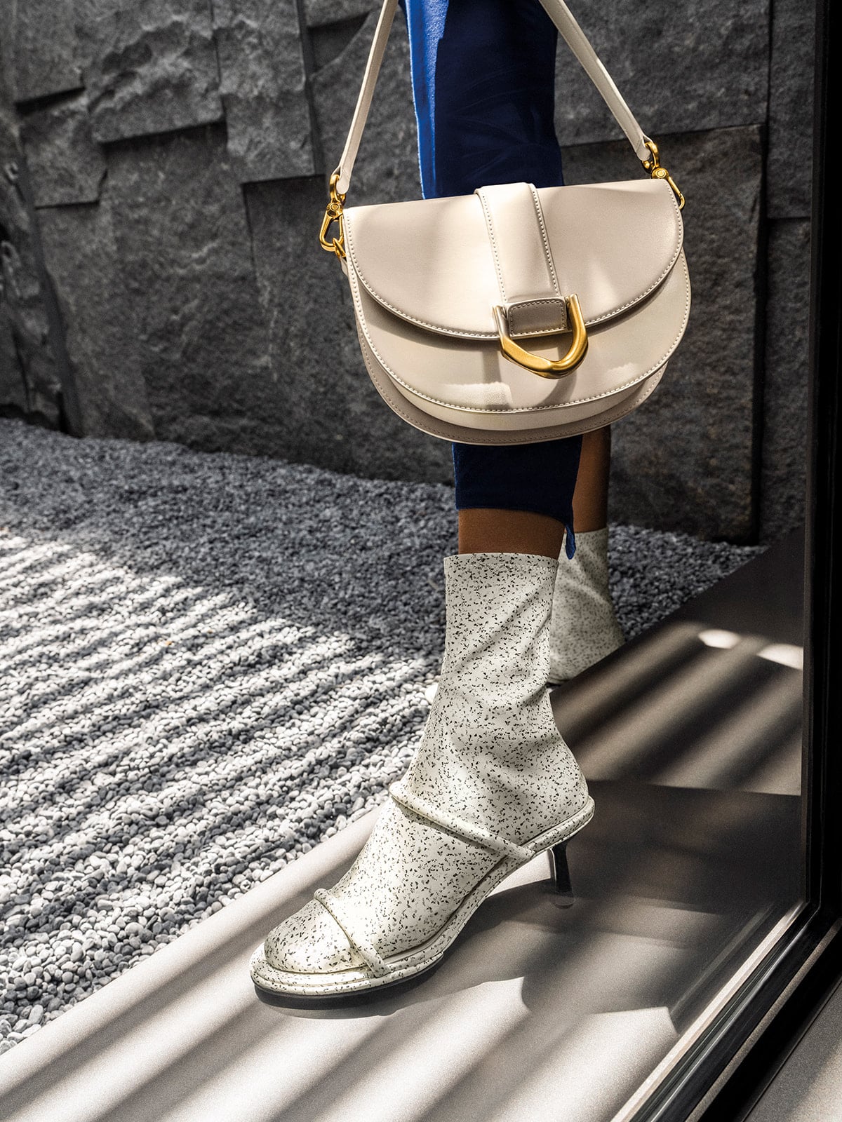Inspired by the Danish concept of hygge—a feeling of cosy contentment and well-being derived from the simple things in life — this stunning selection of stylish bags and shoes features a chic back-to-basics aesthetic.The Terrazzo, a hygge décor staple, has been translated into a greyscale print that is applied to some of the designs.