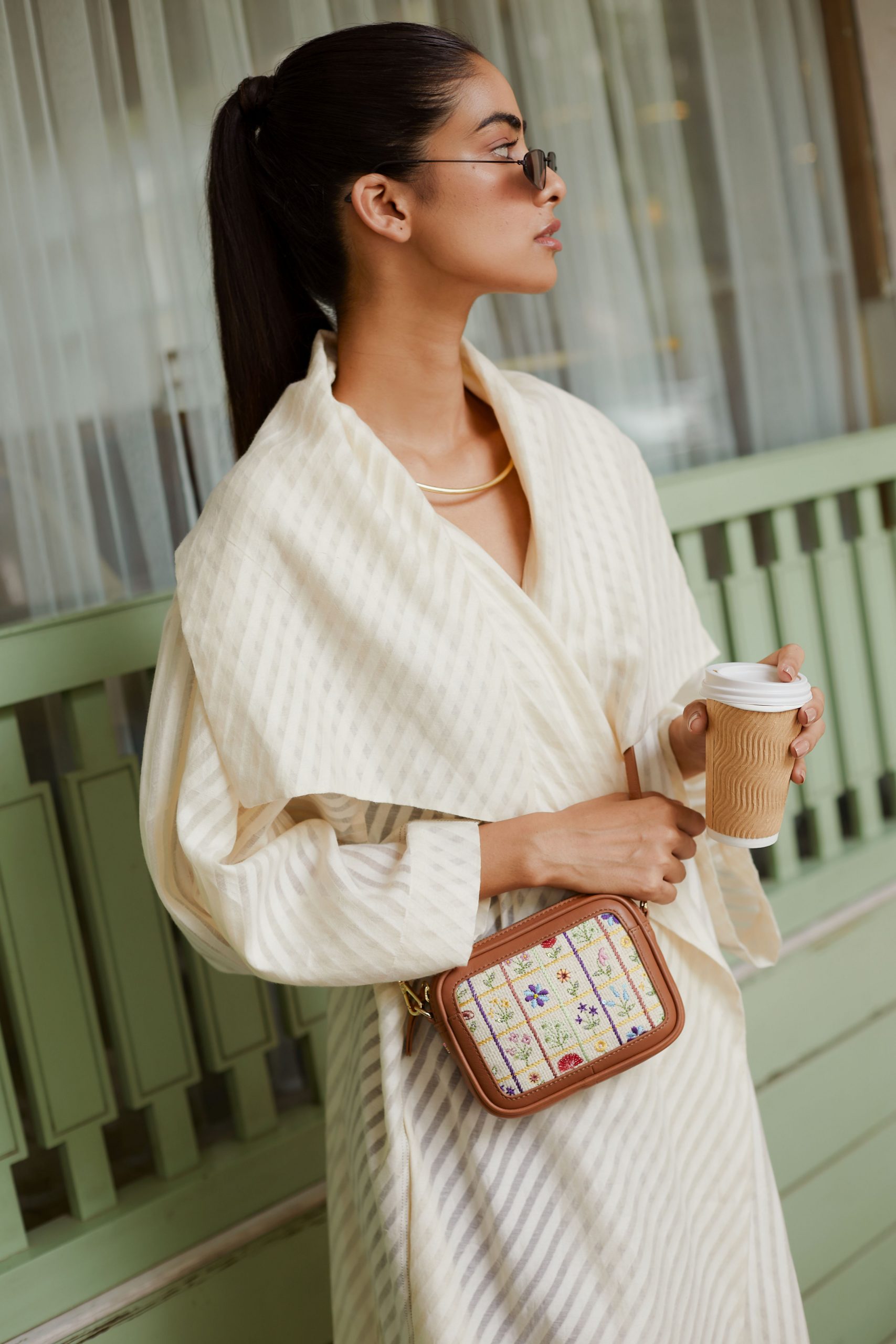 The Mini Goblet Crossbody Bag with hand embroidered flaps is inspired by the most loved designs from the Fizzy Goblet footwear collection. These bags also come in three unique hues – Ivory Embroidered, Orchid Pink Embroidered, Lime Green with Denim Strap
