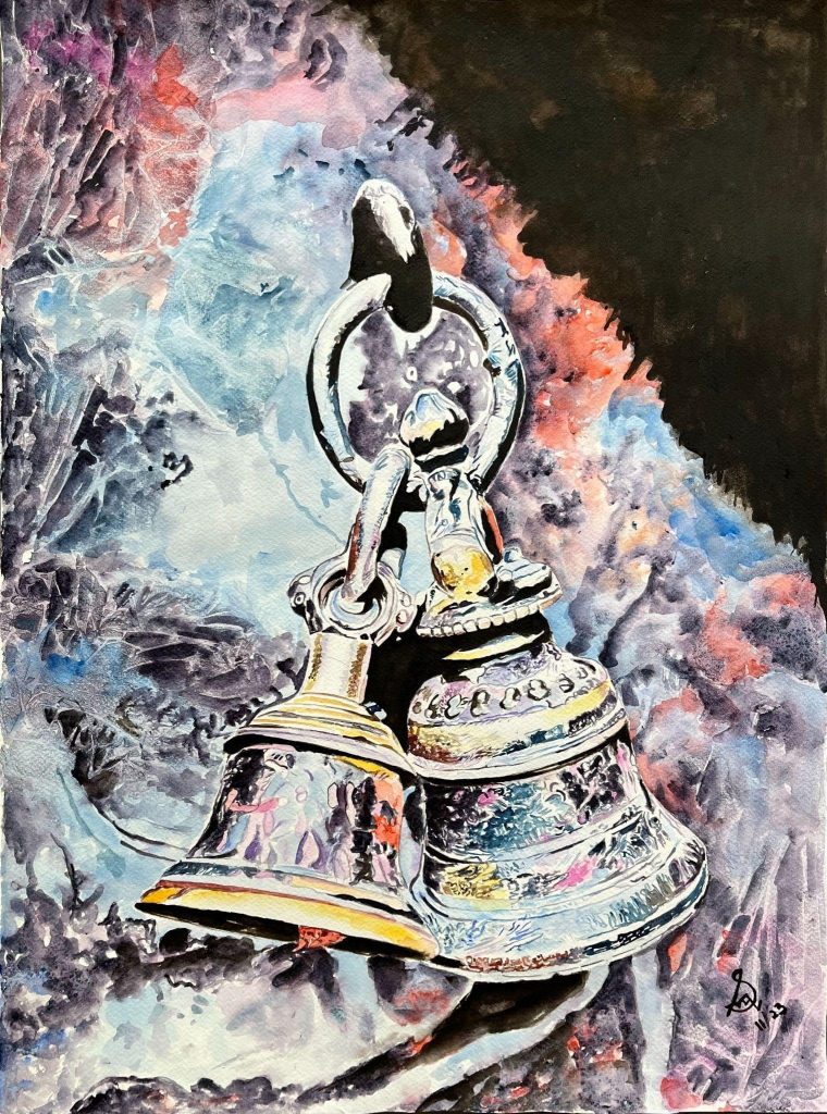I have been watching Dr. Sushma Mahajan’s artistic journey since its inception during the Covid period. It all started when she started helping out her daughter with her art lessons. The bug of the aquarelle caught her unawares and before she could sense, she was in throes of it with an uncontrollable passion. Dr. Sushma has been painting with a feverish frenzy ever since for the last four years. Beginning with flora and fauna with exquisite delicacy and emotive expression which was the theme of her first solo exhibition in Delhi, Dr. Sushma has now decided to broaden the spectrum and celebrate the beauty all around. ‘This Beautiful World’ is a natural move to explore her own artistic eye. Apart from painting in the earlier genres, Dr. Sushma has added yet another dimension to her painterly oeuvre i.e. Temple Art.