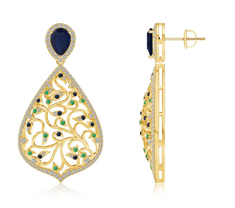 In a world like Bridgerton, where ballrooms glitter and every glance carries consequence, there is always one woman whose presence feels almost mythic. Angara’s Mystic Mayura Natural Blue Sapphire with Emerald and Diamond Earrings evoke exactly that energy. The regal sapphire commands, the emeralds intrigue, and the diamonds soften the narrative with restrained brilliance. Ornate yet impeccably balanced, they feel like heirlooms passed through dynasties, jewels that suggest diplomacy, desire, and a woman entirely aware of her power.