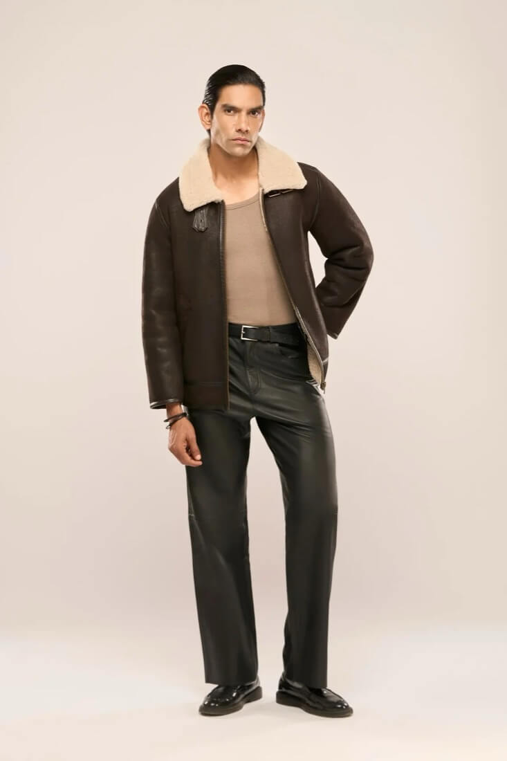 Description: A premium coffee-brown leather jacket with plush fur detailing, designed for warmth and a bold winter statement. Ideal for elevated casual and evening looks.
