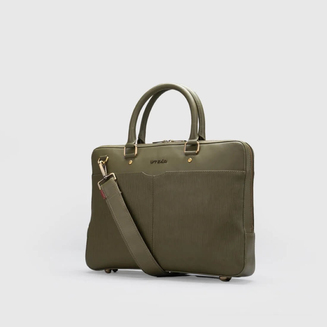 Description: A sleek genuine leather laptop bag designed for professionals, combining functionality with timeless, structured elegance.