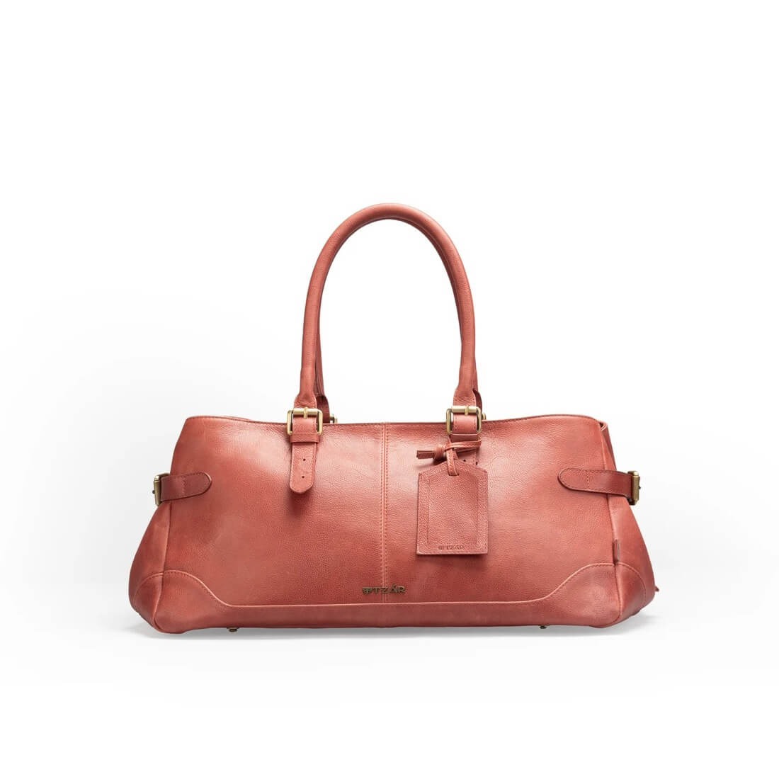 Description: A spacious genuine leather duffel bag crafted for short trips, blending durability with sophisticated travel style.