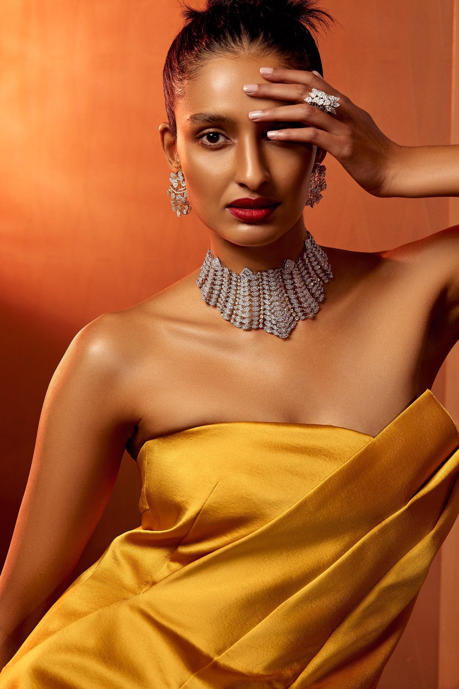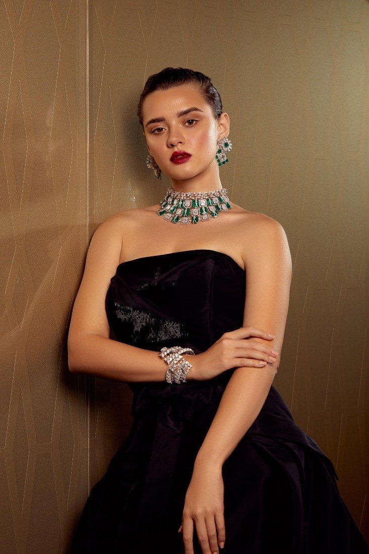 Their commitment to pushing the boundaries of conventional design is evident in their meticulously crafted jewelry pieces. From versatile necklaces that can be effortlessly transformed from lavish statement pieces to elegant chokers, to earrings that seamlessly shift from understated studs to glamorous danglers, the brand’s collection resonates with the evolving preferences of modern brides.
